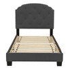 - Panel bed design offers arched shape with nail-head trim and button tufted accents