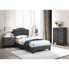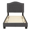 - Panel bed design offers arched shape with nail-head trim and button tufted accents