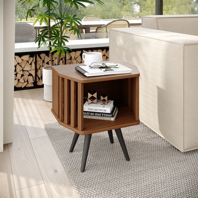 POVISON 20" Fluted Round End Table, Mid-century Modern Side Table, Minimalist Wood Coffee Table
