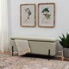 Discover the perfect harmony of style, comfort, and smart storage with the Powell Maclaren Upholstered Storage Bench in Green—a stunning accent piece that effortlessly elevates your home’s aesthetic while enhancing everyday functionality. Whether you’re looking to create a welcoming entryway, add a cozy seating nook at the foot of your bed, or provide hidden storage in your living room, this bench adapts to your lifestyle with timeless elegance. Wrapped in sumptuous 100% polyester upholstery, its soft green color radiates warmth and sophistication, blending seamlessly with a variety of decor styles—from modern minimalist to classic farmhouse. The refined texture invites you to pause and relax, while the sleek black metal legs provide a bold, contemporary contrast that grounds the design with urban flair.