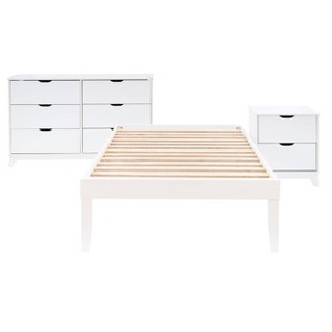 - SOPHISTICATED ELEGANCE: The Powell Pensy 3 Piece White Twin Sized Bedroom Set transforms your space with a twin-sized platform bed, 6-drawer dresser, and 2-drawer nightstand, all dressed in a sleek white finish that exudes timeless sophistication.