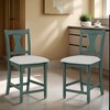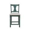 Bring elevated charm and vibrant character to your home with the Powell Willow Counter Stool Set in Teal — a flawless blend of artisan detail, timeless design, and everyday comfort. Meticulously crafted from solid rubberwood, this pair of counter-height stools features a rich teal finish that energizes any space with a splash of bold sophistication. The gracefully sculpted keyhole backrest and beautifully turned legs reflect classic craftsmanship, while the softly padded seat — upholstered in cream woven polyester — offers an inviting perch with the added benefit of stain resistance. Whether you’re hosting brunch or enjoying a quiet morning coffee, these stools make every moment feel effortlessly refined.