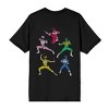 Power Rangers Action Pose Adult Black Crew Neck Short Sleeve T-shirt-XS