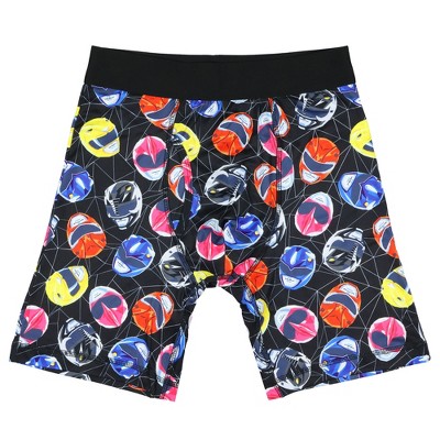 Add bold retro flair to your essentials with this men's 3-pack Power Rangers boxer briefs. Featuring two pairs with all-over prints of character silhouettes and neon line art and one pair with colorful square panels showcasing the Power Rangers, these boxers deliver striking fan style. Made from a breathable polyester and spandex blend with recycled fibers, they keep you cool and comfortable. Machine wash them on cold with like colors and tumble dry on low heat. Use only non-chlorine bleach when needed. Do not use fabric softener. Cool iron if needed. Do not dry clean.