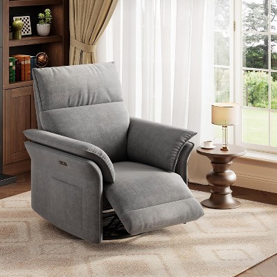 Power Recliner Chair with USB Port, 270° Swivel Glider Rocker with Wide Seat and Chenille Fabric, for Living Room or Nursery - Grey