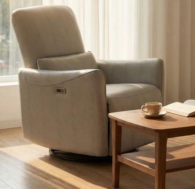 Power Swivel Recliner Chair, Upholstered Fabric Glider Electric Rocking Chair for Adults. Nursery Rocker Chair with Lumbar Support. Type-C&USB, Grey