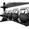 - Handle and kettlebell size increase with weight to match user strength progression