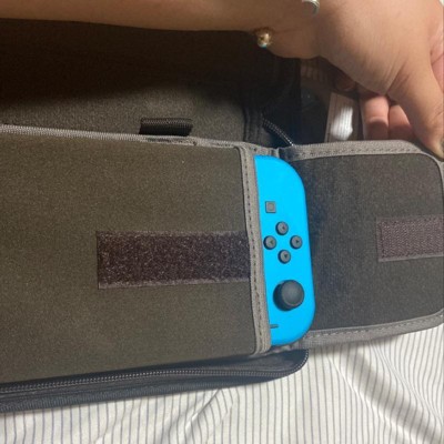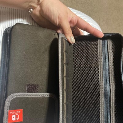 - Carrying storage case for Nintendo Switch has a zippered storage area to store small accessories