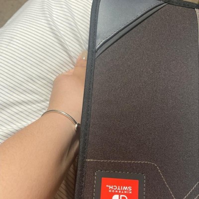 - Nintendo Switch folio style polyester shell case with zippered closure and sturdy handle