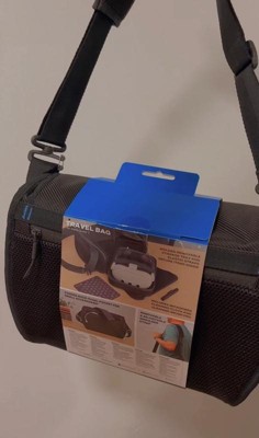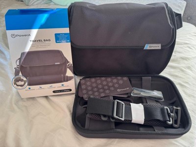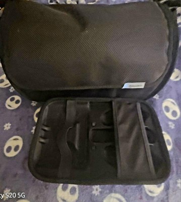 Take your Meta Quest 3 / 3S with you safely and stylishly with the PowerA Travel Bag for Meta Quest 3 / 3S. This officially licensed travel bag features a molded storage tray and elastic straps to securely hold your headset and controllers in place. The zippered closure helps protect your gear from dust and dirt, and the removable adjustable shoulder strap allows it to be worn crossbody or on the shoulder. A padded back-panel pocket holds earbuds or other small accessories. Includes a microfiber cleaning cloth and brush pen to keep your headset clean. 2-Year Limited Warranty.