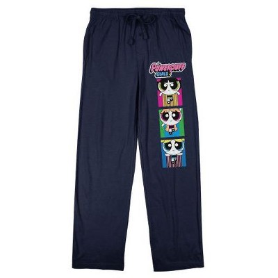 Powerpuff Girls Bubbles Blossom Buttercup Flying Above Logo Men's Navy Sleep Pajama Pants