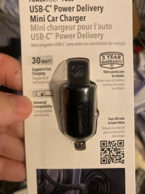 The Scosche CPDC30 PowerVolt 30W Certified USB Fast Mini Car Charger Power Delivery 3.0 with PPS is the ultimate solution for charging today’s USB Type-C or PPS compatible devices, which means less time tethered to your charger and more mobility for you. Our Certified USB Mini Fast Charger with Power Delivery 3.0 technology safely charges your compatible devices up to 50% capacity in about 30 minutes. It’s charging speed is up to 4 times faster than a standard 5W USB Wall Charger. Use the 30-Watt USB Type-C port to fast charge all your devices such as the iPhone 12, 12 Pro Max, 12 Pro, Samsung Galaxy, PPS compatible device, smaller laptops such as a 30-Watt Macbook or one of today's latest and greatest smartphones or tablets using a 12V car power outlet. This charger is also backwards compatible for charging any standard USB-C device. Our fast USB mini car charger is super small and fits flush inside most vehicles' 12V power outlets. Use the attached fabric pull tag to easily unplug the flat, flush fitting charger from your vehicle's 12V outlet. The blue LED indicator lets you know it’s receiving power and is ready for charging devices. The built-in circuitry protects your device from over charging and overheating and is completely safe for less powerful devices. We recommend using a fast charge compatible USB-C cable to achieve the fastest charge rates.