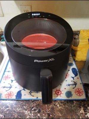 [This review was collected as part of a promotion.] Very interesting appearance. I like that you can see your food from above to get a better idea of when it's ready. I found the shape to be a little less functional than my one that's square. I think it takes a little longer to air fry in this one but overall pleased with how easy it is to clean and how well it worked.