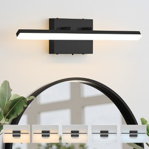 Elevate your vanity or dresser with this sleek LED lamp, blending contemporary design with smart functionality. The durable aluminum base and sealed acrylic shade provide waterproof, fog-resistant, and corrosion-proof performance, while delivering bright, flicker-free illumination. Built-in high-quality 5CCT color temperature LED chip (2700K-6000K five adjustable), the color button is located on the back panel of the light, easy to operate. The light body can be adjusted up and down by 180 degrees, which can be flexibly adapted to the daily lighting needs such as dressing, makeup and so on.