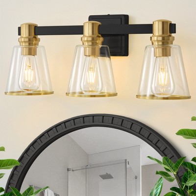 POWLIG 22" Black&Gold Vanity Light Fixture - 3-Light Dimmable Bathroom Lighting with Cone Milk White Glass Shades, Modern Farmhouse