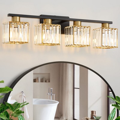 POWLIG 27.75" 4-Light Black Vintage Courtly Bathroom Vanity Light with Frosted Milk Glass Shade