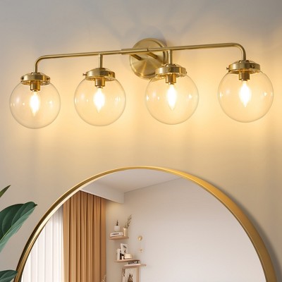 POWLIG 30.71" Gold Modern Vanity Light Fixture - 4-Light Bathroom Mirror Lighting with Milk White Glass Globe Shades