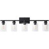This elegant dressing table lamp features a sleek aluminum frame with a rectangular backplate, available in a variety of finishes to achieve a retro yet luxurious lighting ambiance. The design incorporates transparent glass cylindrical lampshades (bulbs not included) that enhance its sophisticated appeal. The fixture features a moisture-resistant UL-certified design with an anti-rust finish, making it ideal for bathrooms and high-humidity spaces. Its versatile dual-direction installation adapts to mirrors, vanities, or corridors. Compatible with E26 base bulbs (max 60W each) and dimmable switches, it allows adjustable brightness for both daytime and nighttime ambiance. With a voltage range of 110-130V and dual-direction installation flexibility, it seamlessly adapts to mirrors, corridors, and other settings.