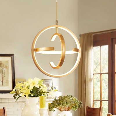 POWLIG 4.72" Gold Modern Pendant Light with Glass Shade, Height Adjustable Chandelier for Kitchen Island, Dining Room or Entryway