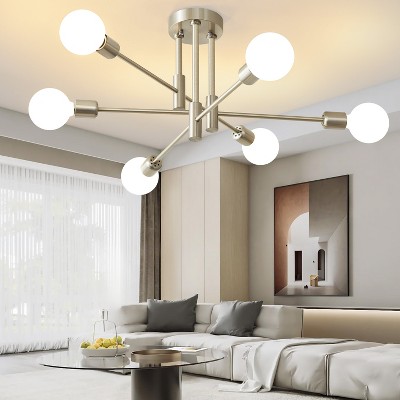 POWLIG 6-Light Vintage Black Sputnik Chandelier with Glass Shade for Living Room, Kitchen, Bedroom, Dining Room, Farmhouse