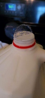 Milk container was open and leaking after drive up pick up. It spilled all over the car