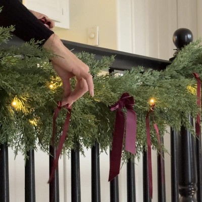 This garland is so full and realistic, it genuinely looks high-end in person. I love that it’s pre-lit with warm twinkling lights and has a timer feature, so it turns on by itself each evening. It was easy to style and works perfectly with my tension rod doorway hack. Great value!