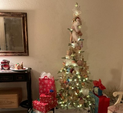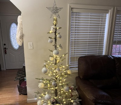 This tree is so cute until you get to the top third! It’s like they forgot to put the rest of the branches on. So disappointing. I’m returning it.