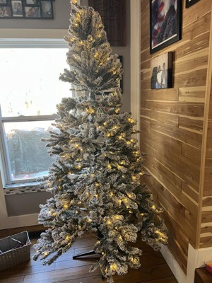 I liked this tree. I've never had a flocked tree before. I still have mixed feelings about it. This tree was super easy to set up and the flocking wasn't very messy. I like the height of the tree. At 7.5 feet it fits perfect with our 9-foot walls. I loved the light settings also. Being able to switch between multiple settings is the best.