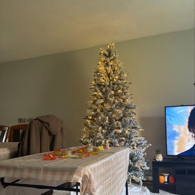Embrace the joy of the holiday season with this Pre-lit Flocked Full Alberta Spruce Artificial Christmas Tree from Wondershop™. This artificial Christmas tree features realistic-looking flocked pine branches for a beautiful snowy look, and it comes pre-lit with warm white LED light bulbs to cast a cozy, festive glow. The decorative tree is easy to set up and includes a metal base for convenient placement throughout the home. Hang ornaments and other Christmas tree decor to complete the look.