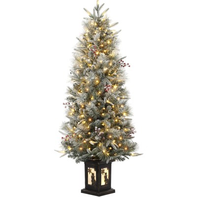 Pre-Lit Spruce Christmas Tree, Artificial Xmas Tree, Light Pot Base, 8 Lighting Modes & Timer, Indoor Outdoor