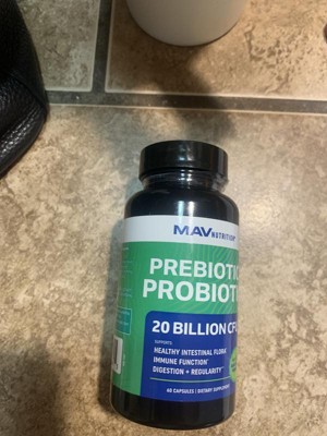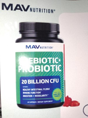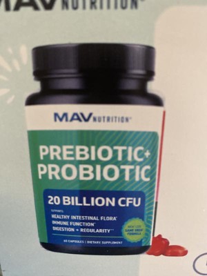 Prebiotic + Probiotic Capsules, Pre & Pro Biotics for Synbiotic Gut Health & Bloating Relief with 20 Billion CFU, MAV Nutrition, 60 ct
