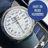 - BLOOD PRESSURE CUFF features an easy squeeze inflation bulb that comfortably fits in your hand. The aneroid gauge shows large easy-to-read numbers, perfect for those with poor vision. Our manual blood pressure arm cuff design helps you acheieve accurate results.