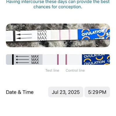 -Negative (No LH Surge): No test line or the test line is lighter than the control line.