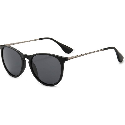Premium Vintage Round Sunglasses for Women Men Classic Retro Trendy Style 01 Black Frame (Matte Finish)/Polarized Gray Lens 5.39×1.93×5.51