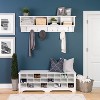 The Prepac Wide Hall Bench with Shoe Cubbies is a versatile addition to your entryway or mudroom. A sleek bench storage seat and a shoe rack white wood in design, this 2-in-1 functional piece serves as a shoe storage bench and a comfortable window bench seat to ease the process of putting on your shoes.