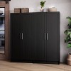 - FUNCTIONAL AND STYLISH: Storage cabinet with doors and shelves boasts an elegant shaker door design with metal pull handles all in a 2-tone, whitewash finish