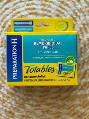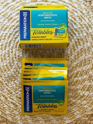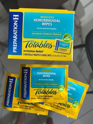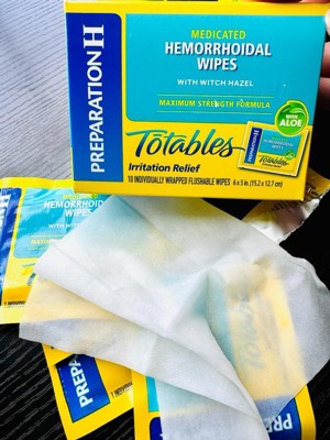 [This review was collected as part of a promotion.] Preparation H Totables are so easy and convenient, even on the go! Perfect for your purse or even pocket! These wipes give soothing relief almost immediately! They are flushable and have aloe for that extra relief!