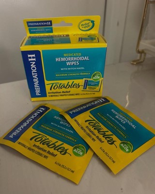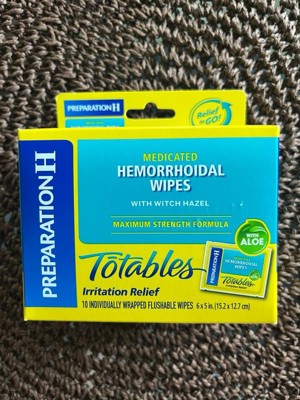 [This review was collected as part of a promotion.] I received a pack of Preparation H Totables Medicated Hemorrhoidal Wipes from Influenster in exchange for my honest review. It came well packed. There are 10 individually wrapped flushable wipes about 6x5in wide. This has witch hazel and aloe. This brand Claims as the #1 Dr/ OBGYN recommended brand for hemorrhoid treatment. I love that these are in a discrete travel size packets. It is indeed a Relief-to-go thing. Great for traveling and camping or even for emergencies. This Feminine care Does helps Relieves, reduce, and soothes irritation. Very useful when bidets are not accessible. Highly recommended to have/carry all the time.