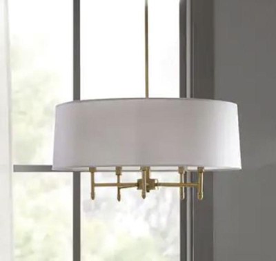[This review was collected as part of a promotion.] This light is gorgeous! I have the light with the cream and gold shade. It’s a show stopper. It’s a traditional light, but will fit in transitional homes, and with mid century modern decor. Buy it. It’s beautiful!!
