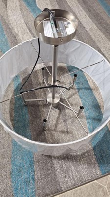 Elevate your home decor with this versatile 5-light chandelier, featuring a white tapered fabric shade. Its classic round shape and silver brushed metal frame bring a glamorous, luxurious touch to any space. With broad appeal, this silver chandelier fits traditional, modern, and transitional home décor, making it ideal for dining rooms, living rooms, bedrooms, entryways, and more. Adjustable to a maximum 62.5-inch drop height, dimmable with compatible switch and bulb, and adaptable to sloped ceilings, this versatile chandelier offers flexibility for various room designs. Hardwired; professional installation recommended. Upgrade your space with this elegant chandelier today!