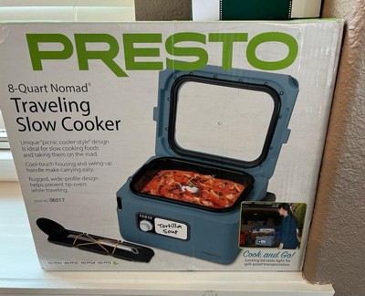 [This review was collected as part of a promotion.] If you're looking for a slow cooker that can keep up with your busy lifestyle, the Presto Nomad is a fantastic option. Its rugged, portable design makes it perfect for everything from tailgating to camping trips. One of the standout features of the Presto Nomad is its durability. The sturdy construction ensures that it can withstand the rigors of travel without sacrificing performance. The locking lid keeps your food secure during transportation, and the cool-touch housing prevents accidental burns. The large capacity of the Presto Nomad is another major advantage. Whether you're feeding a family or a crowd, you'll have plenty of room to cook up your favorite slow-cooked meals. The non-stick interior makes cleanup a breeze, so you can spend less time scrubbing and more time enjoying your delicious food. In addition to its practical features, the Presto Nomad is also stylish. The sleek design and vibrant colors make it a great addition to any kitchen. The built-in dry erase board is a fun touch that allows you to write down your meal plans or leave messages for others. Overall, the Presto Nomad Slow Cooker is a versatile and reliable appliance that is well worth the investment. If you're looking for a slow cooker that can go the distance, the Nomad is definitely worth considering.