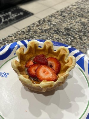 [This review was collected as part of a promotion.] My kids love waffles so we were excited to get this and try it out!! Used it for fruit with yogurt for breakfast. They didn’t really choose to eat the bowl but we tried the waffle and it was decent.