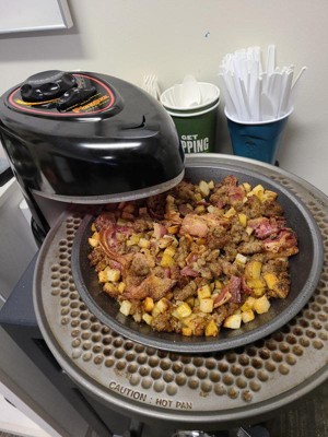 Absolutely, it makes great pizza... ...but it does so much more! My favorite thing to do is to make breakfast with the Pizzazz. In a 9" pie tin, I'll cook up some diced bacon, sausage, and ham. I'll take the meat out of the pie tin (leave all that great flavor in the pan!), and I'll add diced potatoes, peppers, onions, and mushrooms to the meat drippings. Stir it all up so everything gets coated, add my favorite seasonings, and cook up the veggies. When the veggies are done, I put the meat back in the pie tin and heat everything back up, to make it all happy. I then take the pie tin off the Pizzazz, sprinkle on some of my favorite cheese, pour in enough scrambled eggs to cover everything, and then I'll put it back on the Pizzazz and cook it until the center isn't jiggly anymore. Is it quick? Nope. Is it delicious? Absolutely... Grab your favorite condiments and dig in!!