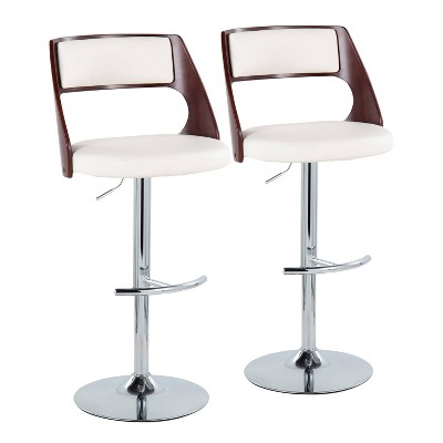 Preston barstool is a fun stool. It is adjustable so you can have it at a counter or a bar. Since it doesn't have arms you can easily tuck it under the counter without any issues to free up space. The fabric is easy to clean with a damp clothe.