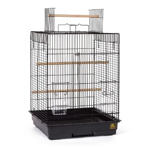 Prevue Pet Products Cockatiel Playtop bird cage in Black SP1818PTB features a playtop roof and has a removable bottom grille and pull-out tray for easy cleaning.This Cockatiel Playtop cage includes two plastic cups and three wood perches and is designed for parakeets, cockatiels and other small-medium birds.Our bird cage measures 18" Long, 18" Wide, 24" High, with 5/8" wire spacing.