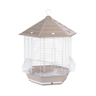 Prevue Pet Products Copacabana Bird Cage Stone SP31998 is a uniquely styled home for your Finches, canary or small parakeet. Neutral stone in color, this playful cage comes complete with a swing, plastic perch and two hooded cups. Drop down front door provides easy access into the cage while the split trays pull out for easy cleaning. Our Copacabana bird cage measures 12" in diameter and 21-1/2" high to the top of the finial. Non-toxic, powder coated, wire mesh with 3/8" wire spacing.