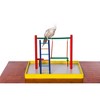 Prevue Pet Products Cockatiel Court Playground 22530 provides your bird with necessary exercise and stimulation. Designed for Cockatiels and small Parrots, our colorful playground is constructed from solid hardwood and features 100% safe, FD&C colors. Laminated base makes cleaning quick and convenient. Toys included as shown. Playground measures 19" long, 14 1/2" wide, and 12 1/2" high.