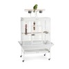 Prevue Pet Products powder-coated steel construction Select Bird Cage in Chalk White 3154C offers quality craftsmanship at an affordable cost. Powder-coated steel construction with a cagetop playstand to keep your bird entertained and content, the heavy-duty push button lock keeps your bird securely inside its cage when playtime is over. This select bird cage also includes four stainless steel cups, two wood perches and a castered stand for portability. Both tray and bottom grille are removable for ease of cleaning while the rounded corner seed guards control mess around the bird cage. Our powder-coated steel construction Select bird cage in Chalk White measures 36" long, 24" wide and 66" high with 3/4" wire spacing.