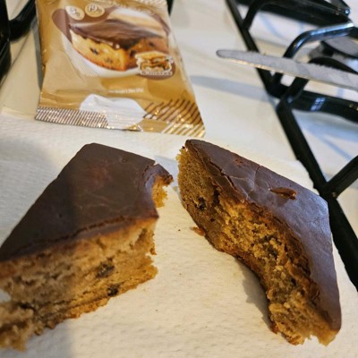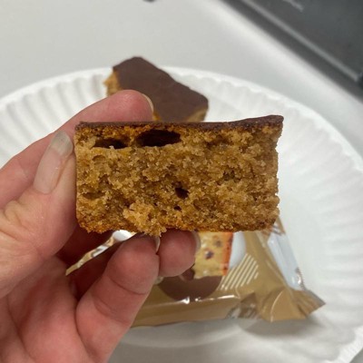 [This review was collected as part of a promotion.] I ate this before I took a picture of it. I shared this with my husband. We both liked it! It tasted sweet enough to be a treat but not too sweet. It has a yummy chocolate layer on one side. To me, It tastes more like a muffin consistency than a brownie. It didn’t taste like protein to me and I love that! I don’t like how heavy protein bars are and this doesn’t taste like that. I’m excited to try the other flavors. I received an incentive to write this review.