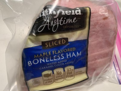[This review was collected as part of a promotion.] I bought a small package of Smithfield Anytime Favorites sliced maple flavored boneless ham. I enjoy mixing in a meat with my eggs for breakfast and found this ham to be very good. The maple flavor was very subtle. Ham is 97% fat free and with no artificial ingredients. It was a good value in the store too.